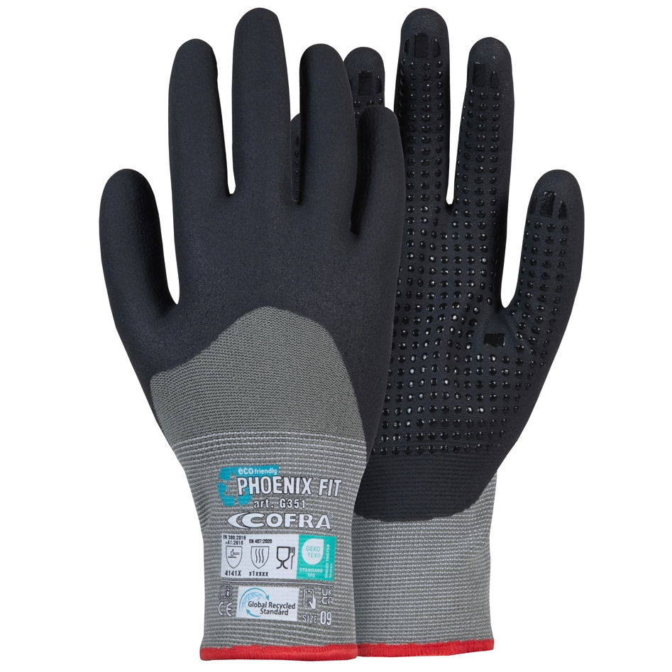 Γάντια Νιτριλίου με κουκίδες Cofra Phoenix Fit. Διαθέτουν κουκίδες νιτριλίου στην παλάμη για καλύτερο κράτημα αντικειμένων.