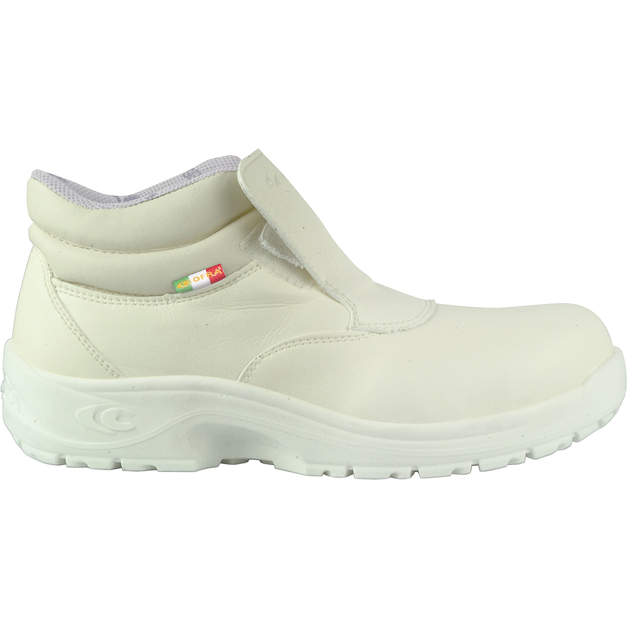 Ανατομικά λευκά παπούτσια ασφαλείας Cofra Tullus S2 FO SR, κατάλληλο για όσους έχουν ευαισθησία στη μέση και τη σπονδυλική στήλη. Βοηθάει στη σωστή στάση του σώματος χάρη στον ανατομικό εσωτερικό πάτο και την ανατομική εξωτερική σόλα μεγάλου πάχους, κατασκευασμένη με έμφαση στην πολύ υψηλή απορρόφηση των κραδασμών. Χωρίς κορδόνια, ρυθμίζονται με ελαστικό βέλκρο για μεγαλύτερη άνεση. Είναι κατάλληλα για πολύωρη χρήση σε νοσοκομεία και ιατρεία, βιομηχανίες τροφίμων κλπ. Πλένονται στο χέρι στους 40 ° C με ουδέτερο σαπούνι.