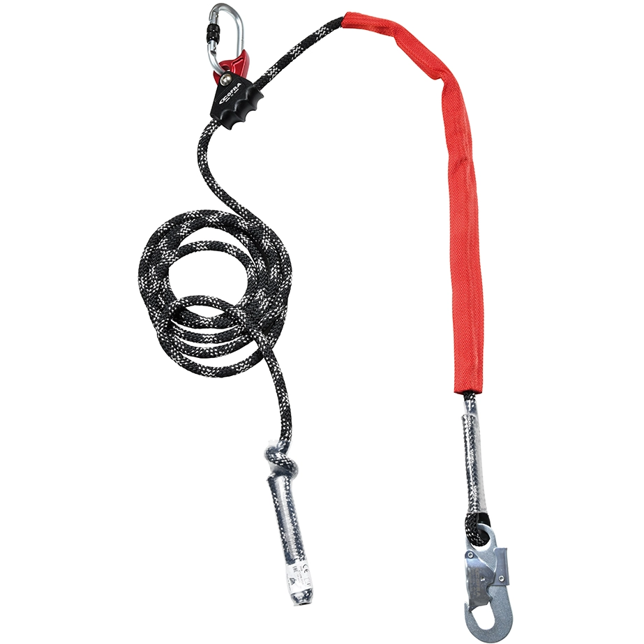 Ρυθμιζόμενο σχοινί συγκράτησης Cofra Mygrab μήκους 0.60 έως 5.00 m πιστοποιημένο για βάρος έως 150 kg. Το σχοινί συγκράτησης και τοποθέτησης εργασίας είναι σχεδιασμένο για ασφαλή εργασία σε ύψος, προσφέροντας υψηλή αντοχή και αξιοπιστία.